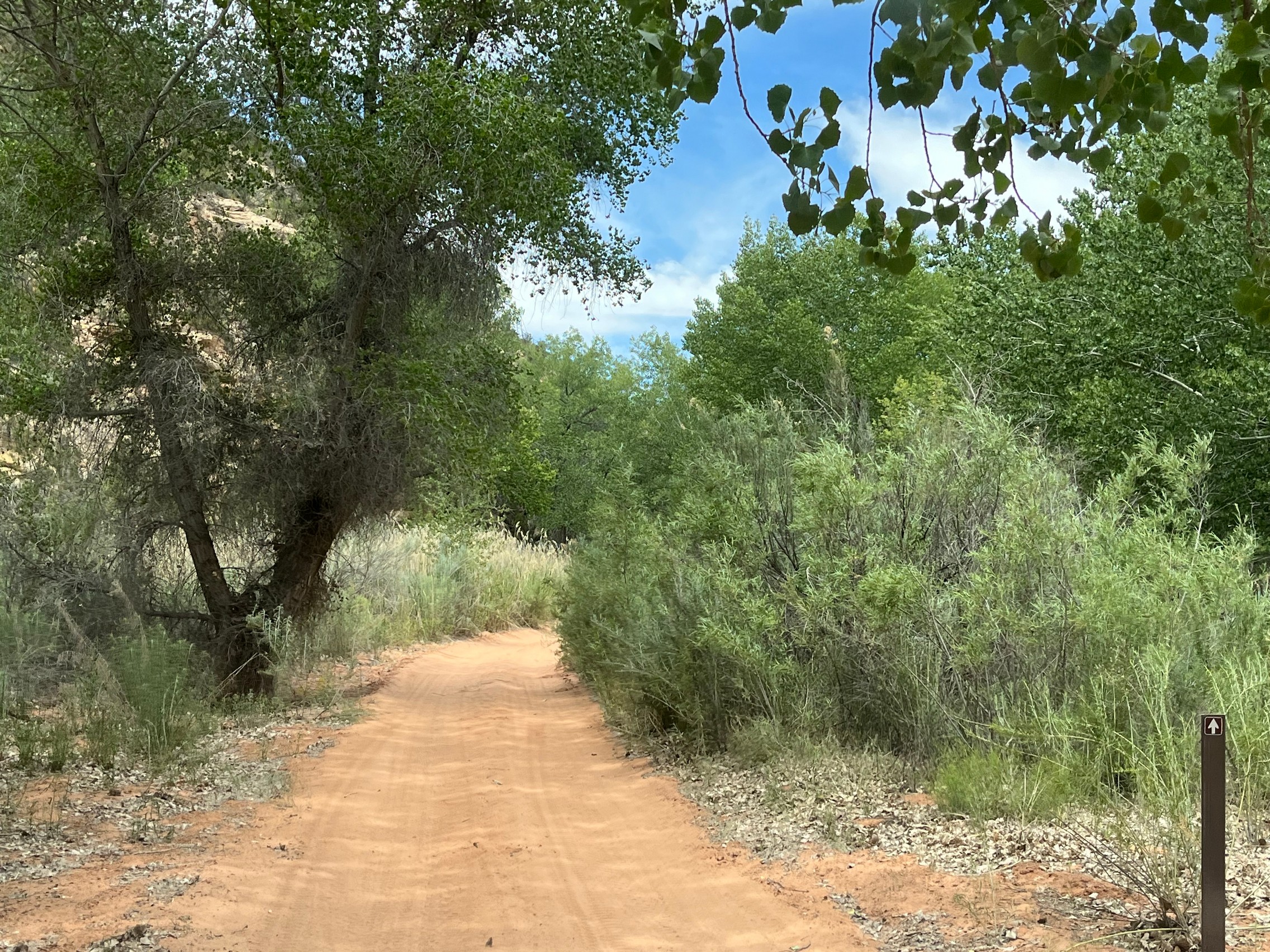 There were many more creek crossings as we continued on the trail. At one of those creek crossings, we saw a sign for hiking, and we made a note of it. We stopped near the end of Arch Canyon and turned around to go back out to the other end.