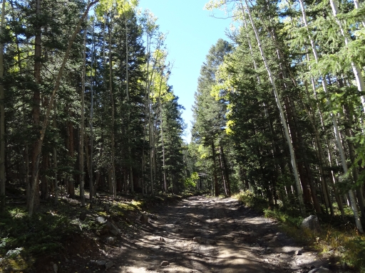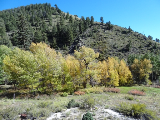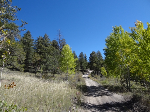 We said goodbye to Roger and headed to Aspen Ridge. This was the trail we'd come for, and we were looking forward to it. We passed by Bassam Park again, and then we headed into the trail to view aspens and find the ghost town of Futurity. Walt remembered seeing a sign for it many years ago, so we kept our eyes peeled.