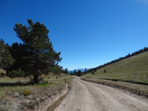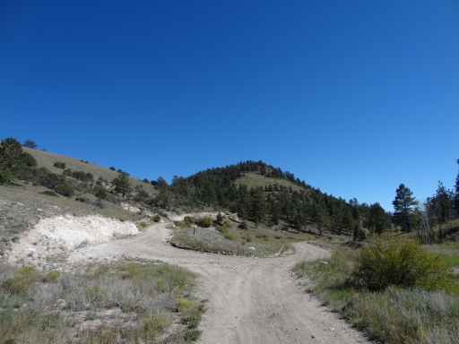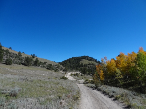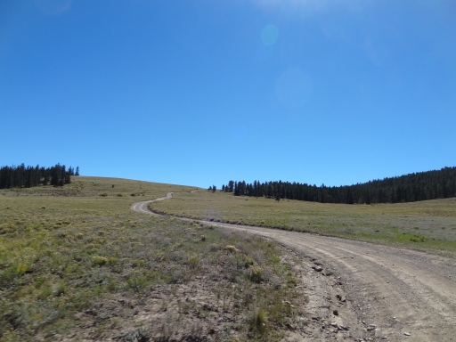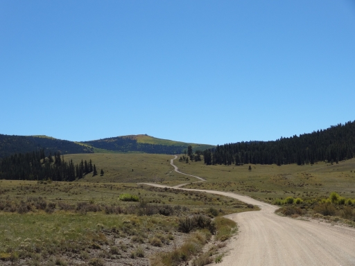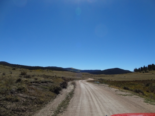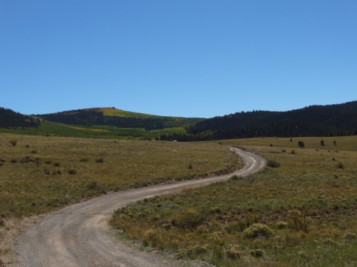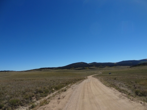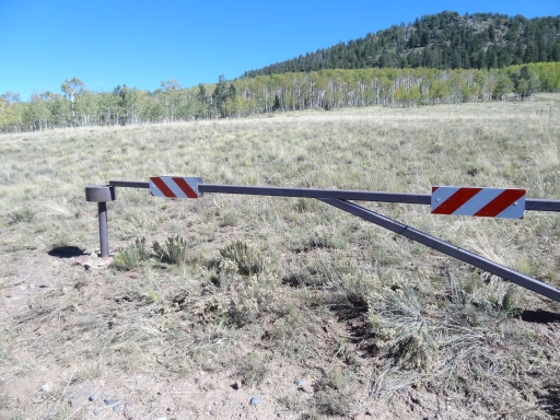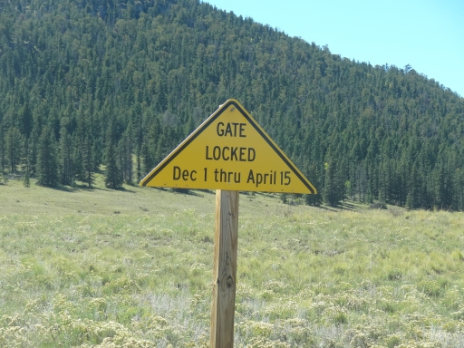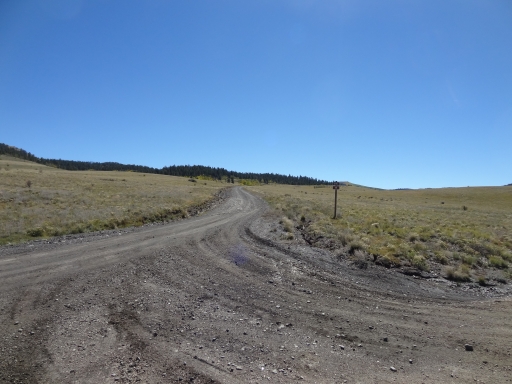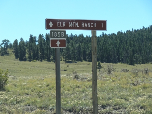 We came to forest service road 185.C marked only with a carsonite sign. We stopped only for a picture and headed on. When we got to 185.B we thought that might be the road to Futurity so we took it, only to find it ending at the gate for Elk Mountain Ranch. It looked like we would be saving Futurity for our next trip.