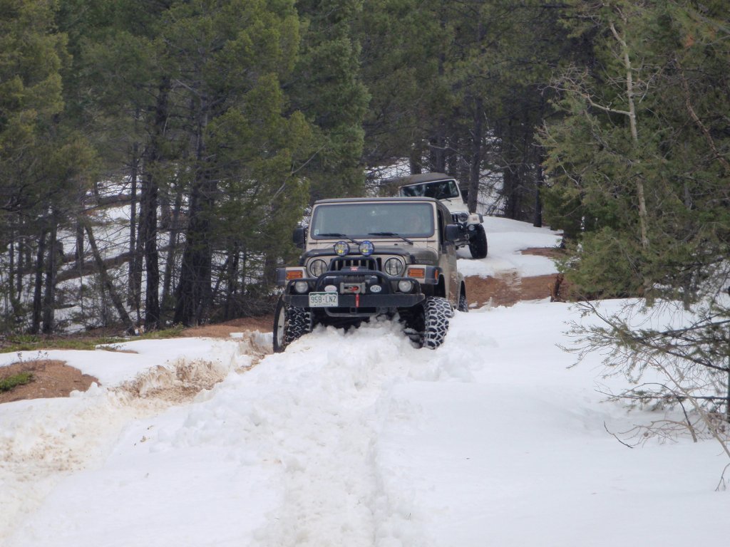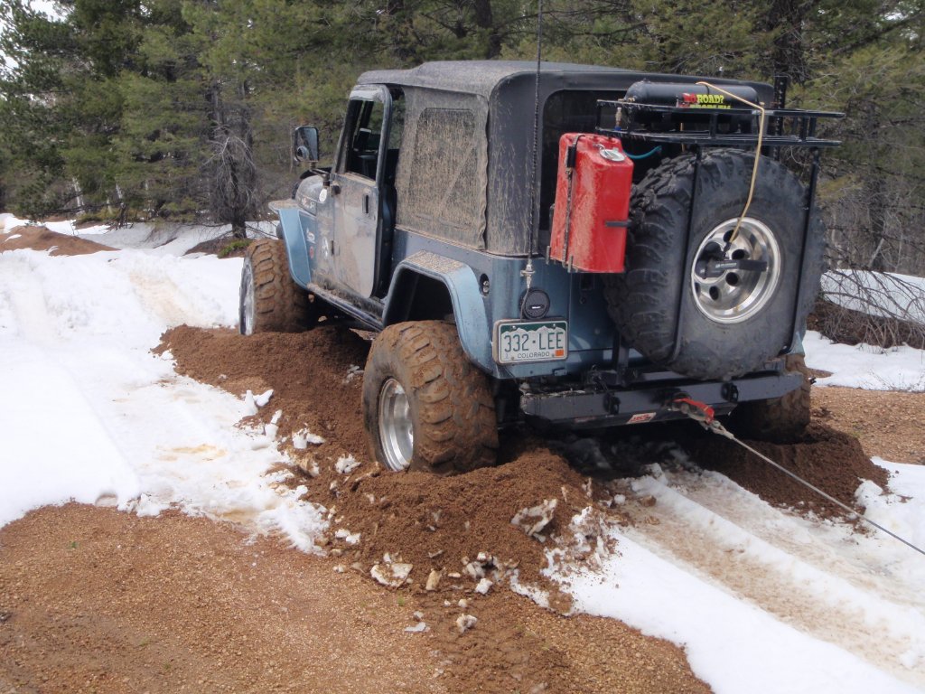 On the way out, Walt got really stuck. Matt tried to pull him up the trail with no luck. His Jeep would just not move in the deep snow. So, Roger pulled him out from the rear back down the trail. After a few tries and different lines we got Walt and Roger up the hill through the deep snow.