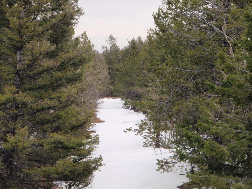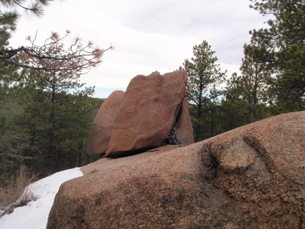 We went a short way down Balanced Rock Road past the group and then stopped for lunch. We looked at what was ahead of us down the trail. There were more snow drifts at least four feet deep, but this time going uphill. We all had lunch and talked about what to do, and then we turned around and called it a day.