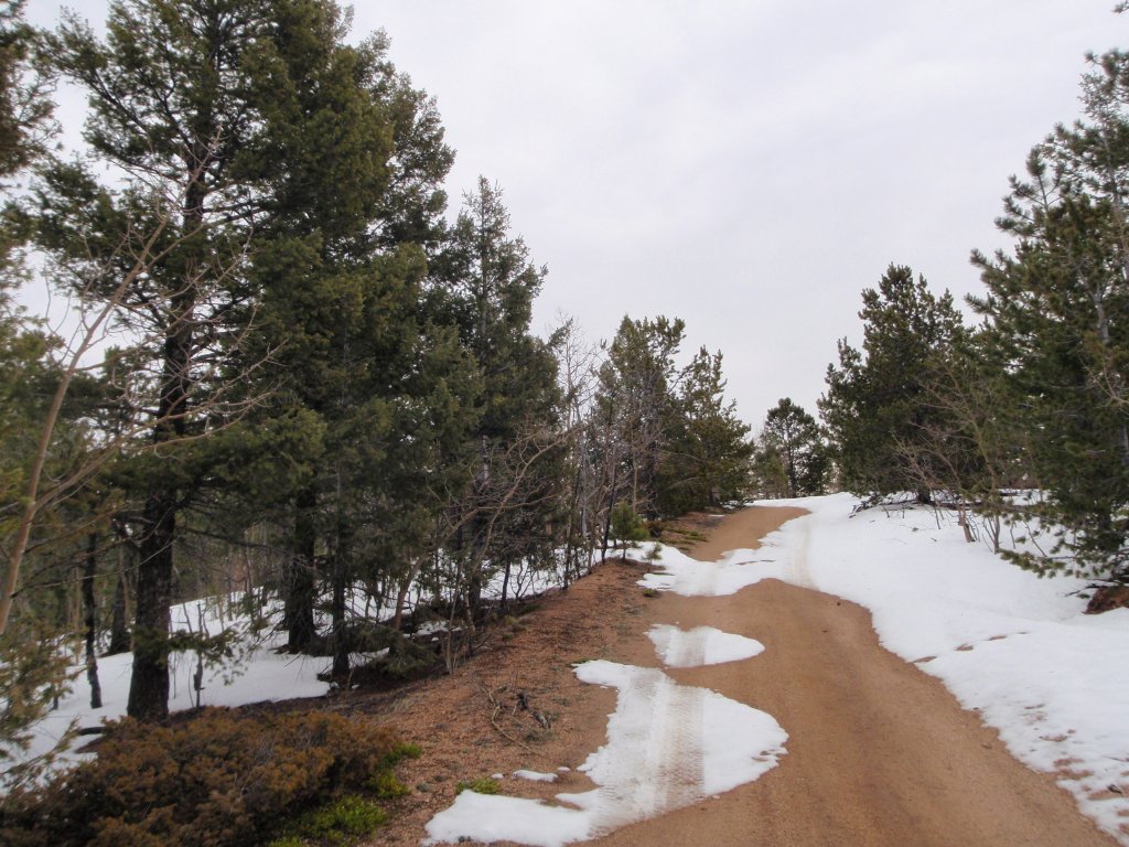 After Mount Herman Road we went to Balanced Rock Road. There was snow at the start of the trail. It looked like some other people went down Balanced Rock Road before us. We didn't hang out for long before making our way down Balanced Rock Road, too.