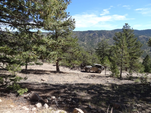It was really, really windy and much cooler. Julie got out for a bit to take pictures, but the rest of us took our photos from our Jeeps. The scenery was very impressive. The only bad thing about Chinaman Gulch is that you rarely get above the trees to see the scenery, so it was nice to have it here on top of the mountain.