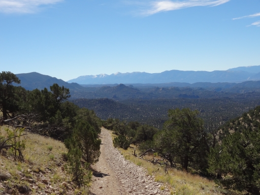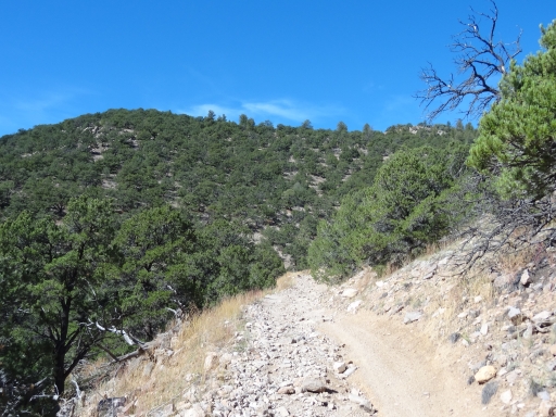 One of the final switchbacks on the way up even had some good-sized rocks in it. It was a fun climb all the way to the end. Then we took the spur that went to the top of the mountain where we parked for pictures.