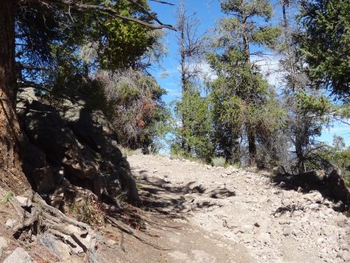 We did the beginning of Bald Mountain Gulch and then headed up the hill on Bald Mountain Loop. The trail would go around the mountain with a short spur to the top, and we weren't sure what to expect. Right from the start, it was a great climb on loose rocks and dirt. In some spots, it even got pretty narrow and tippy. We were enjoying the climb in the sunshine.