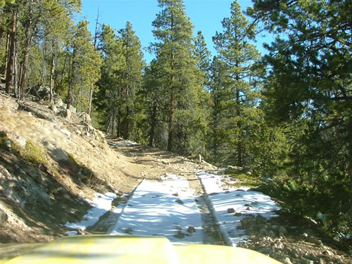 We followed Spring Gulch out, and it had recently been plowed so it was a quick trip out. We rolled into Idaho Springs in the early afternoon, so we decided to go up Oh-My-God Road and explore the area around Russell Gulch while we still had daylight. It was a matter of minutes and we were on the next trail.