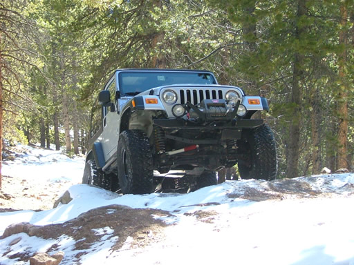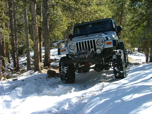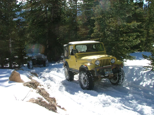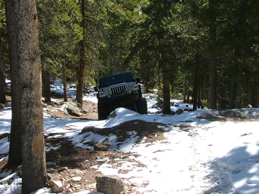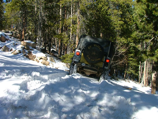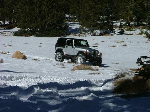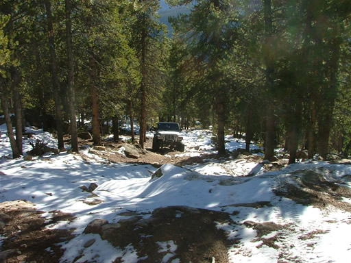 The rocky hill on the way up didn't have too much snow on it until we got to the very top. It made the top a challenge, but it wasn't too tough. No one had to winch or use a tow strap, though we had to work on it a bit.