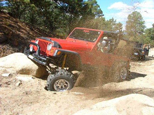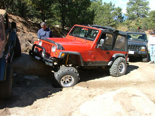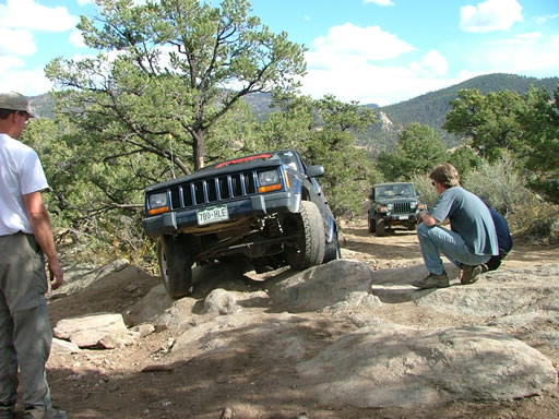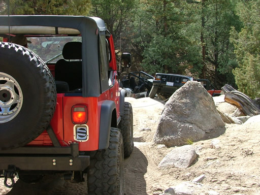 Everyone had a good time getting through the Rock Garden and no one had any major issues. There was a good-sized loose rock at the bottom that gave a few people some trouble but everyone worked their way around it. Bob was under Julie's Jeep at one point moving it out of the way.