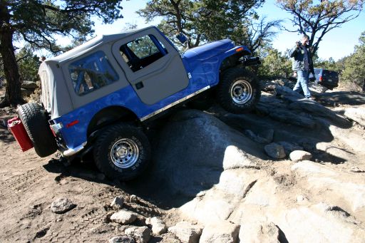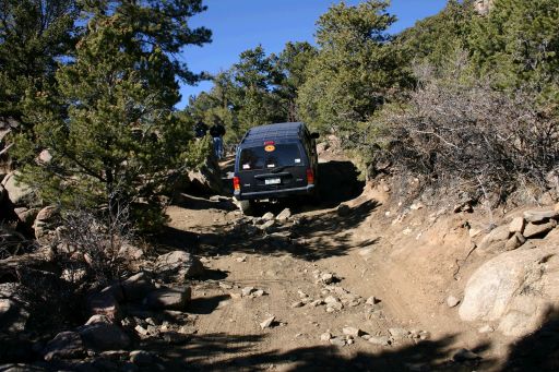 e stairs. Ladd and Dave went up easier than ever. Later we noticed that it looks like a few rocks have been stacked on the ledge. We had a little trouble getting Mike through, because he is closer to stock with the smaller tires and that makes all the difference in the world. Ed chose a difficult line to the left and got to use his winch and the winch point to get out of being high centered one more time