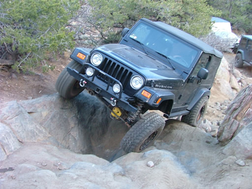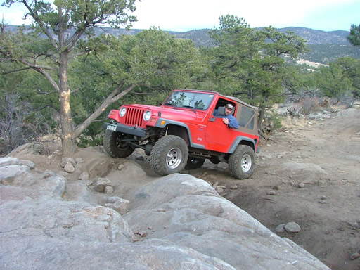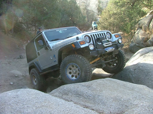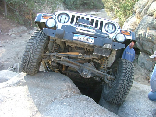 Bill was next, and he twisted his suspension through the whole thing. He got some great flex when he went over the same big rock, and he didn't have any troubles at all.