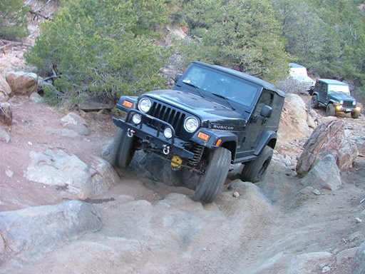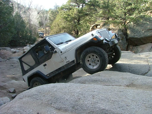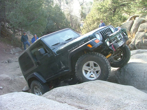 Almost everyone went over the big rock on the right side of the Rock Garden, and no one had any issues. Dave had fun playing on the next set of big rocks, flexing his suspension out as much as possible.