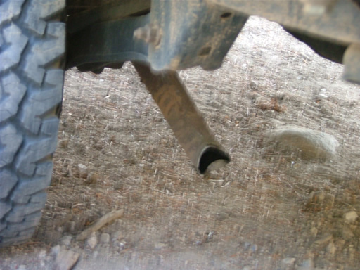 Sean went next and was slipping a bit so he backed down to adjust his line. He caught his tailpipe on a rock on his way down and bent it all the way down. It was curved and not folded, so his engine was still running, but it had to be straightened out.