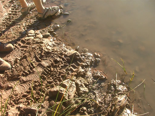 We had seen vehicles on the other side, so we knew we could get out. We also knew there was another river crossing coming up. The trail was dry, and then suddenly we were crossing a wide and muddy section. We had no idea why there was mud there, but it was slick.