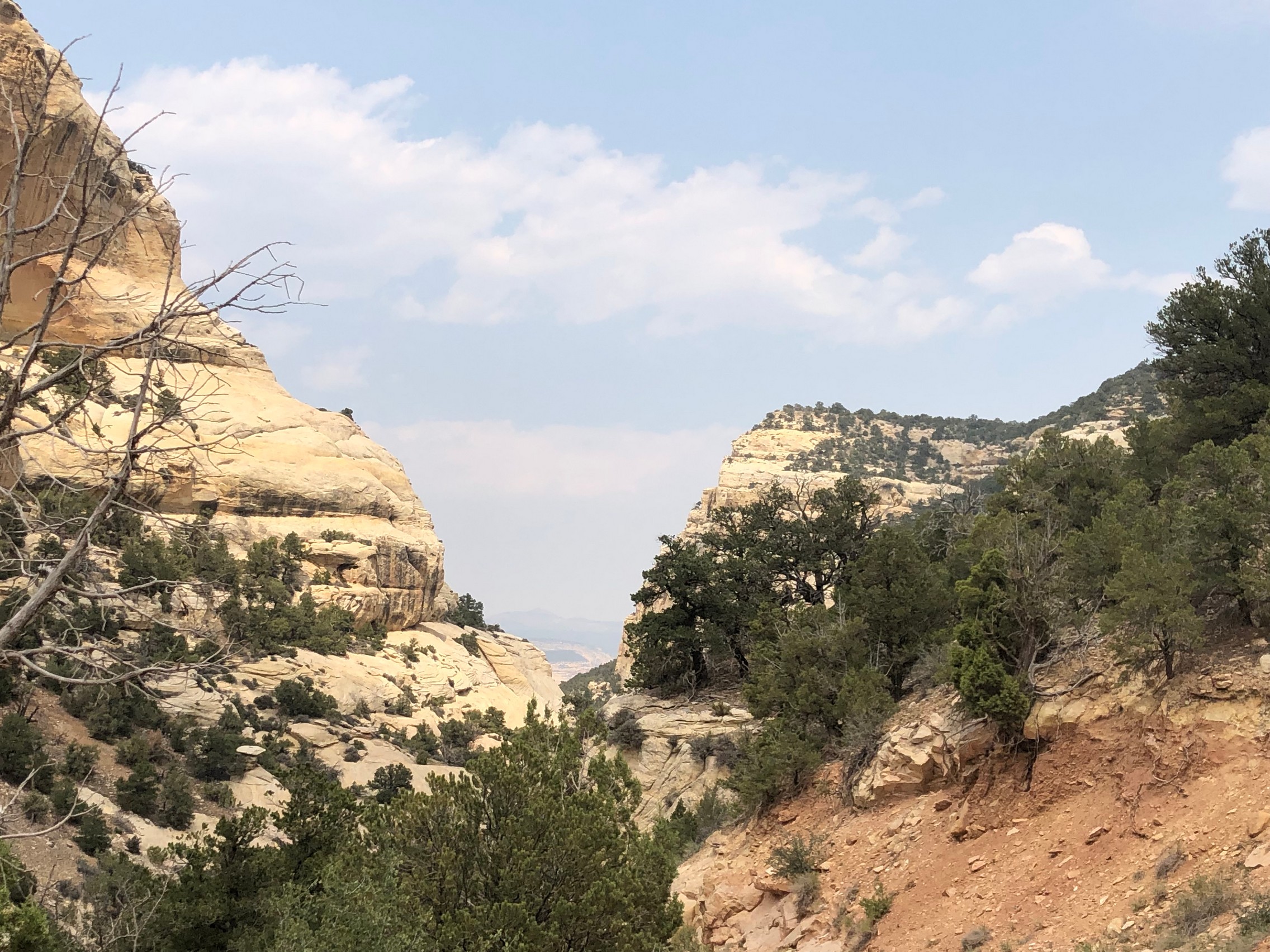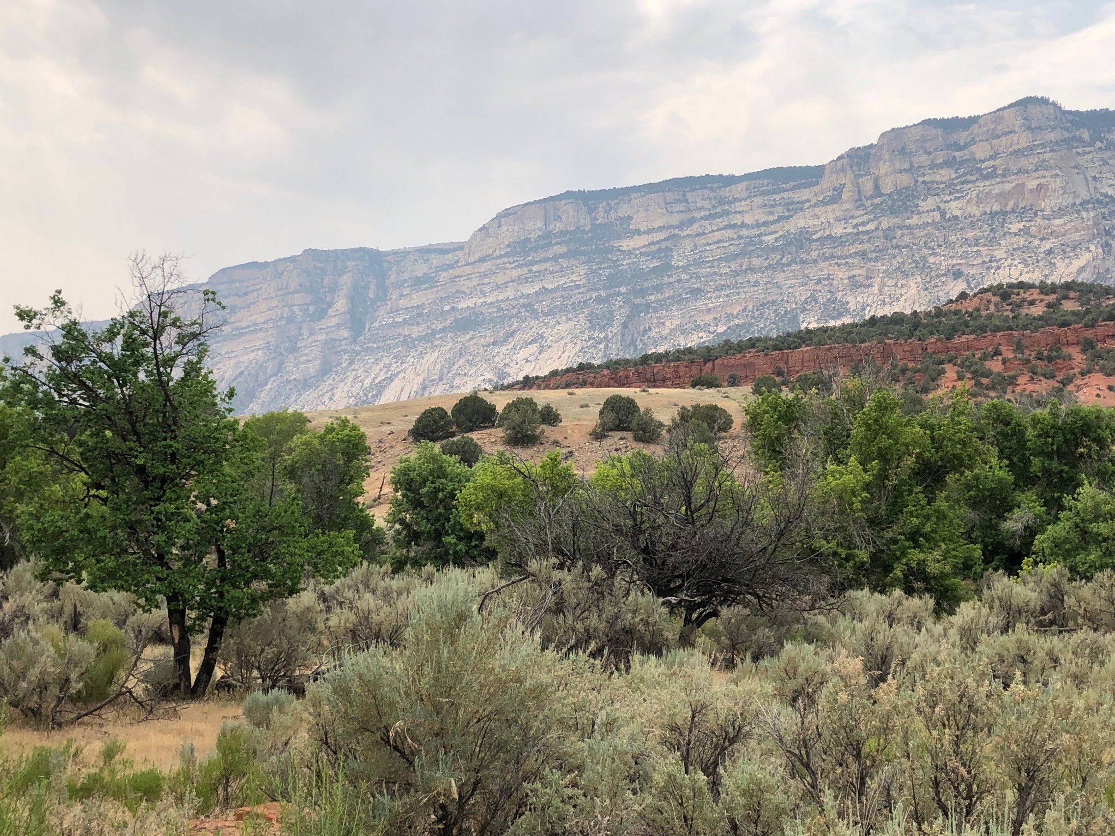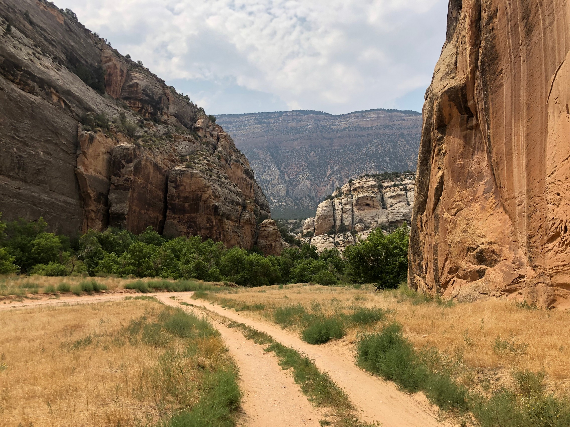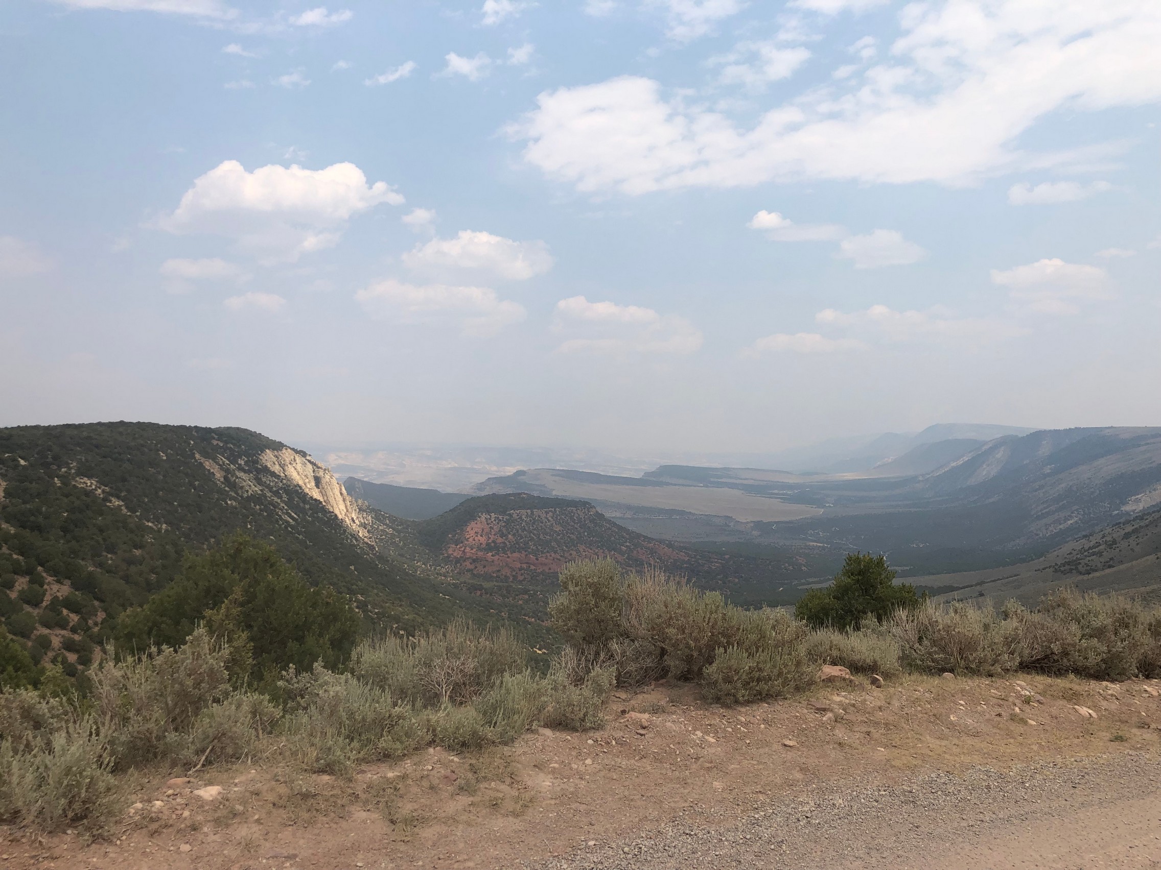 Echo Park is a dirt road, unlike Harpers Corner. At the end of the switchbacks not far into the trail, Matt ran into a group of fire fighters doing some training in the dry shrub and grassland next to the road. We asked if they needed help, but they said they were training. It was fun to see.