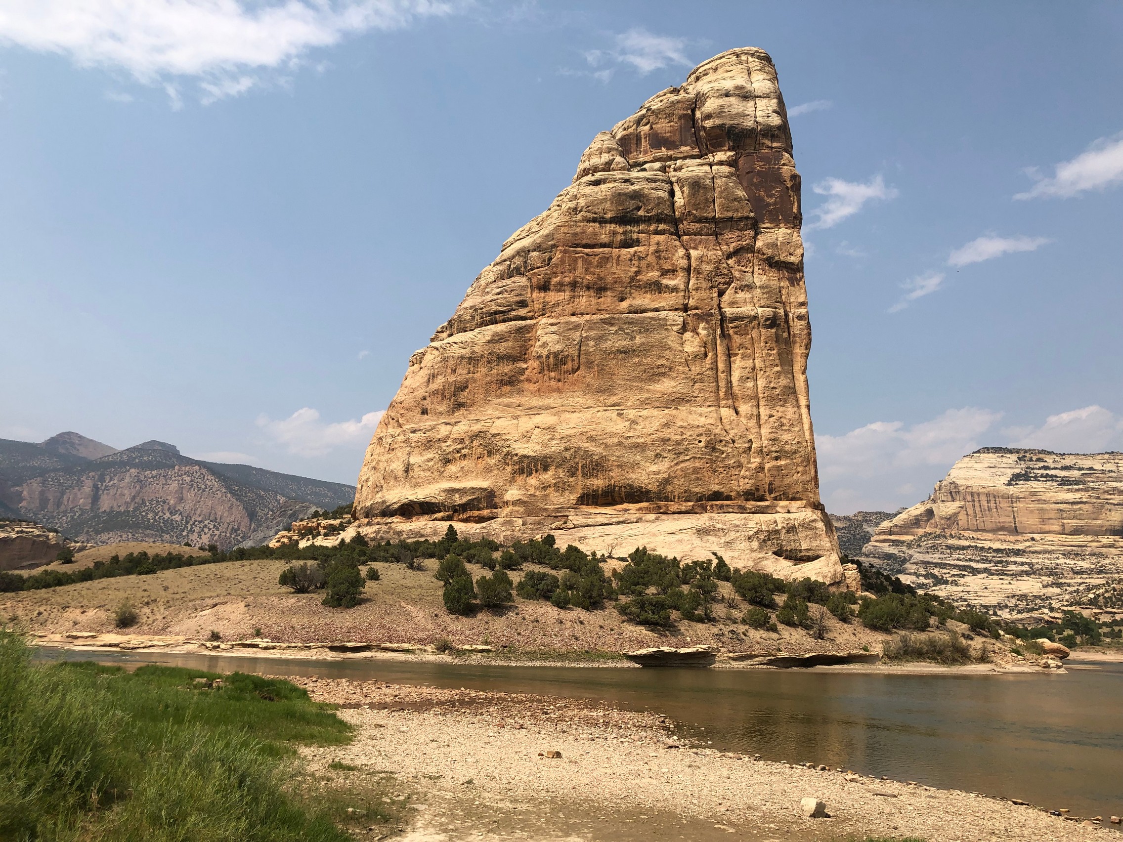 At the end of Echo Park, Matt and his family stopped near the day-use beach and walked down to the river right in front of Steamboat Rock for a short break.