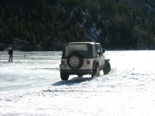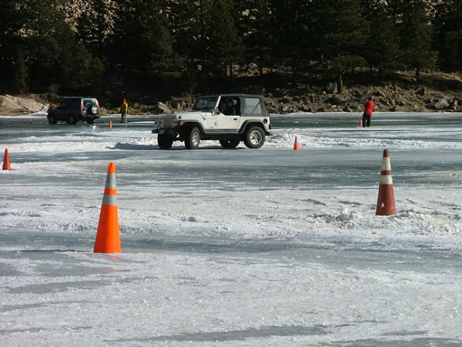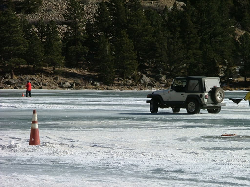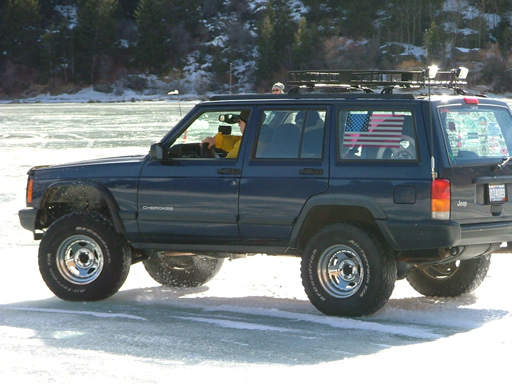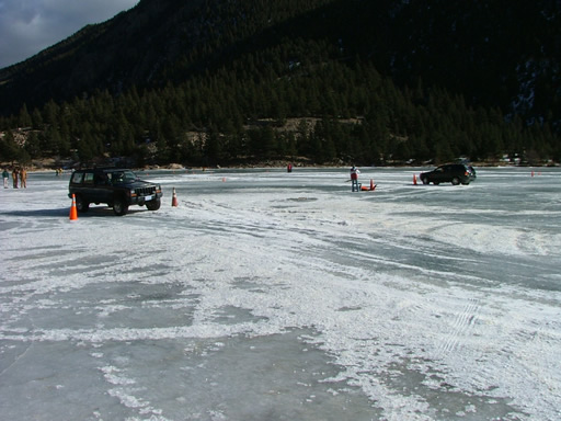 The worst part was that we did not get to practice. The day just didn't go very well for the organizers. That meant the first time Sean was on the ice was to be an actual race. Bob had raced before but this time he was racing in Monica's Grand Cherokee for a change of pace.