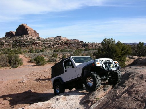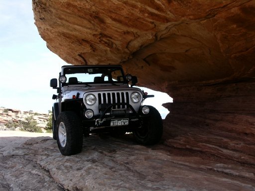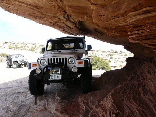 With Golden Spike and the Golden Crack behind us, we were ready to complete the "Trifecta" with Gold Bar Rim. After a little confusion over where we actually finished Golden Spike and started Gold Bar Rim, we were on our way. We worked our way down the trail, around a small canyon, and up onto some slick rock. There were a couple well-built Jeeps from the Carolinas parked there and one had his hood up. After asking if they needed help (they didn't) we pressed on. These would be the only two 4x4 vehicles we were to see all day until we got back out to Route 191. It was beginning to seem strange that we could run the most popular trails in Moab and see so few others on the trails!