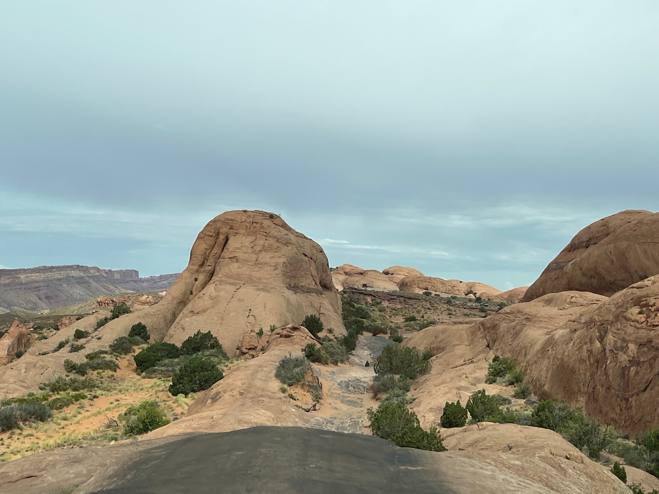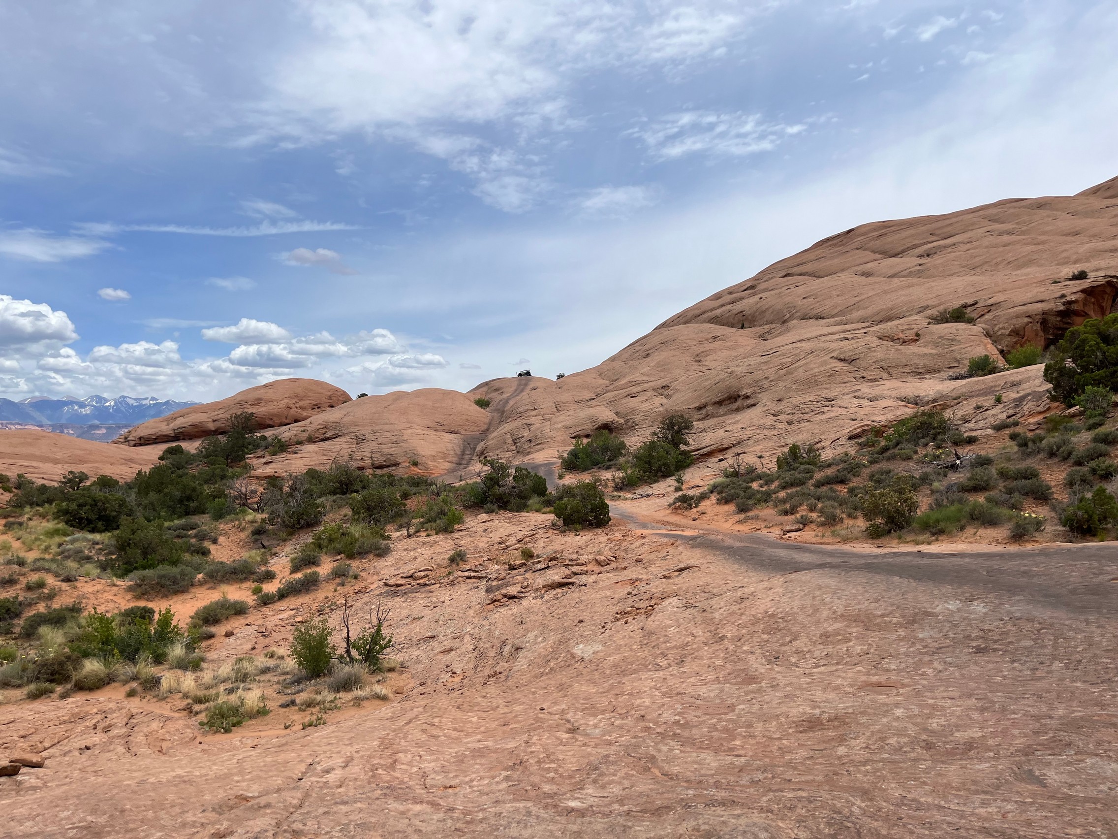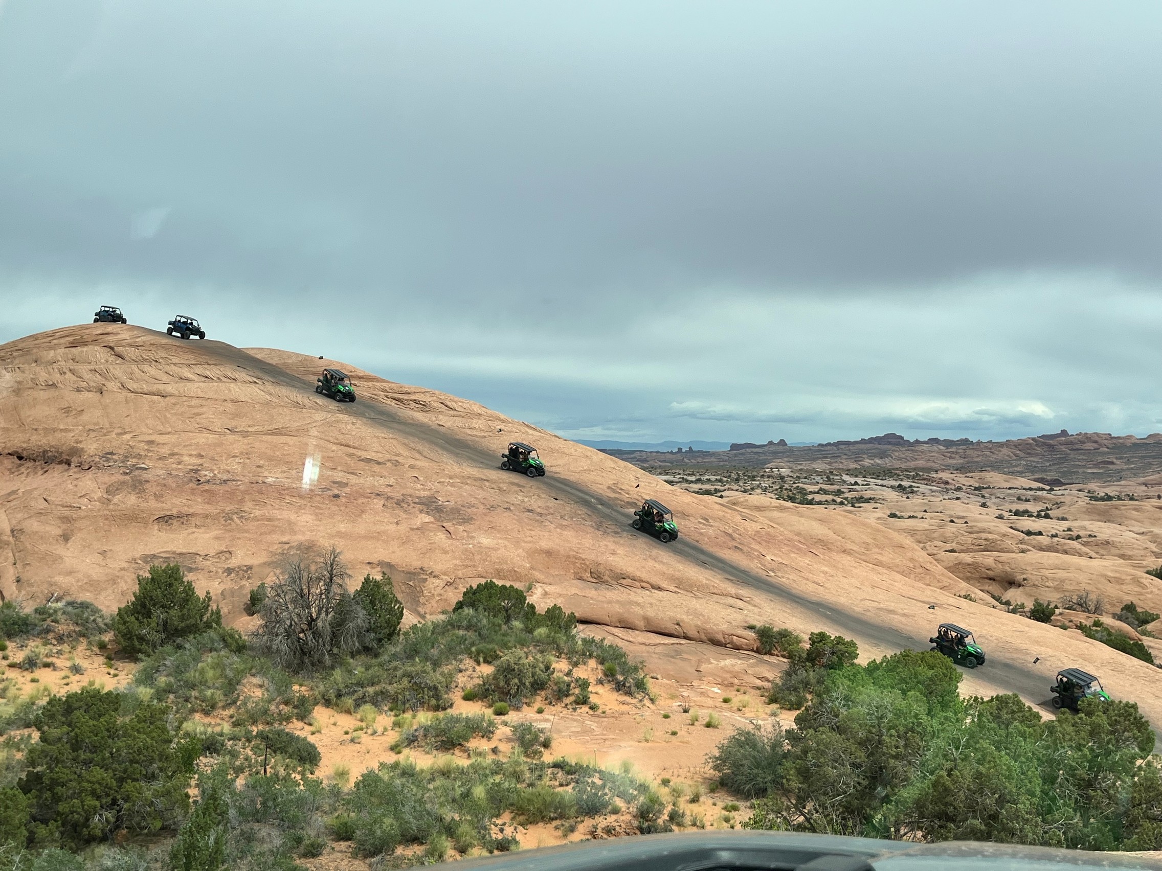 As usual, Hell's Revenge was very busy. We stopped at the dinosaur tracks and overlook for a bit before heading on. At most of the up-and-down hills, we had to wait to go up or down because of all the traffic. It was mostly side-by-sides with just a few Jeeps.