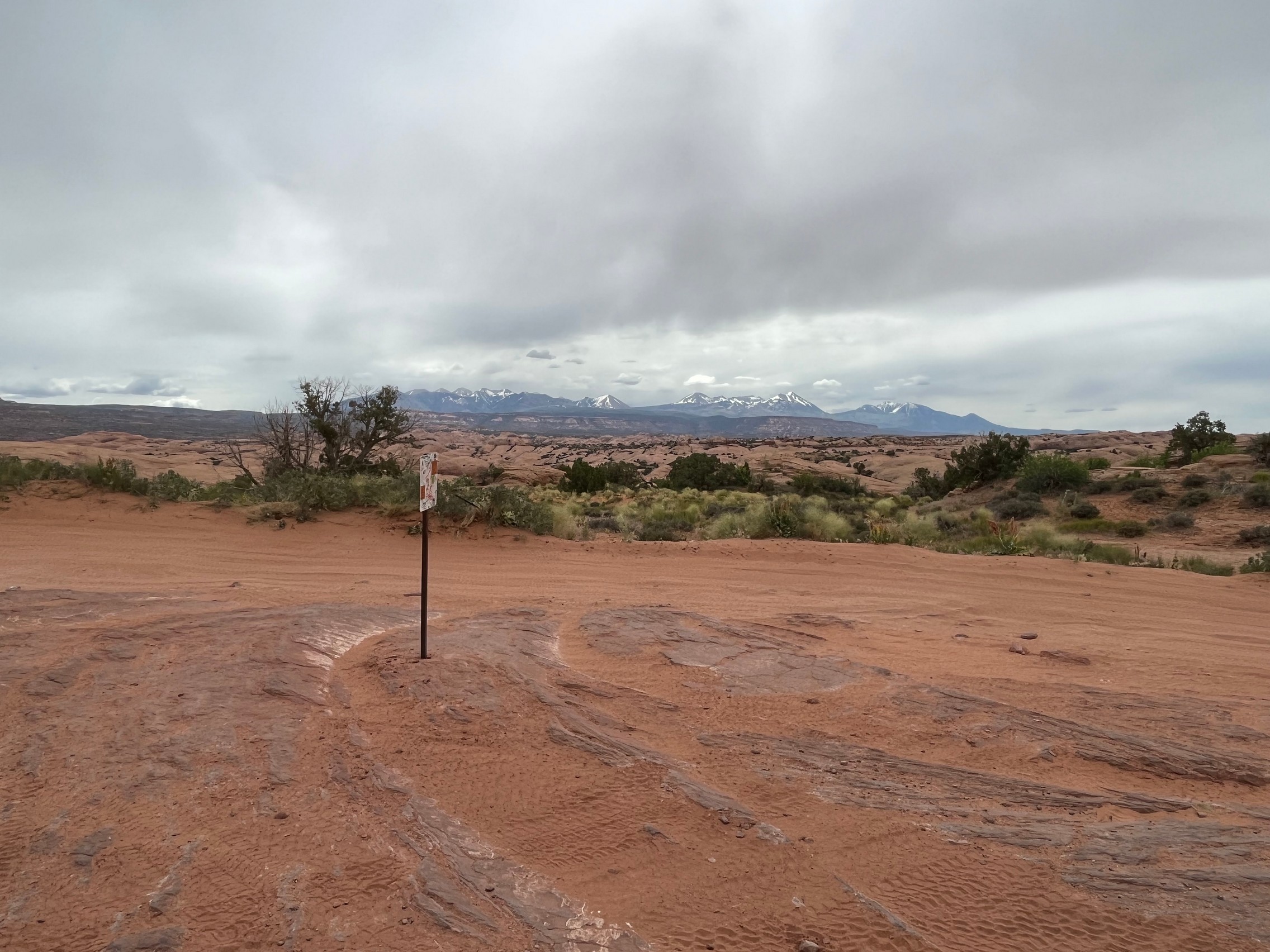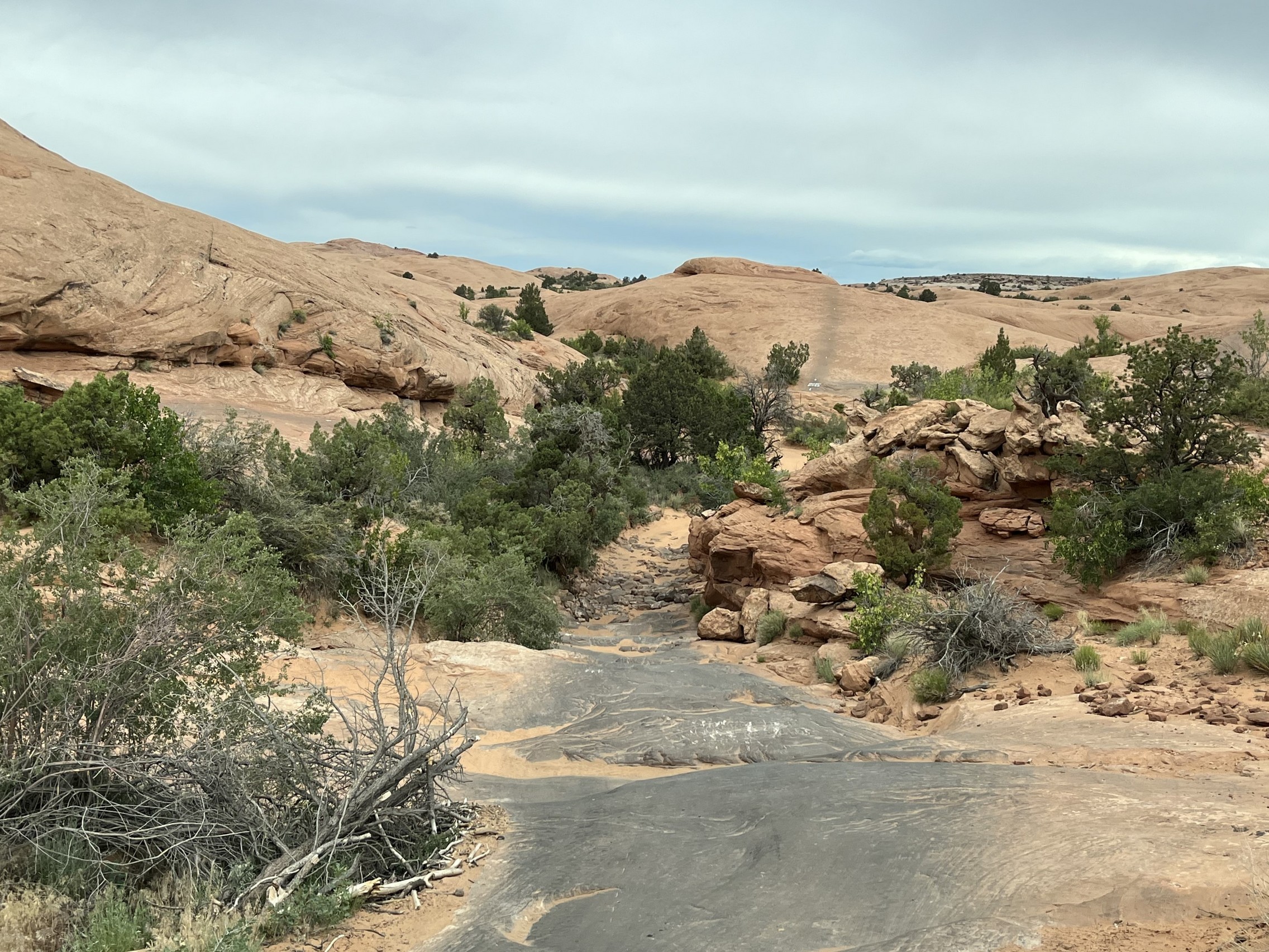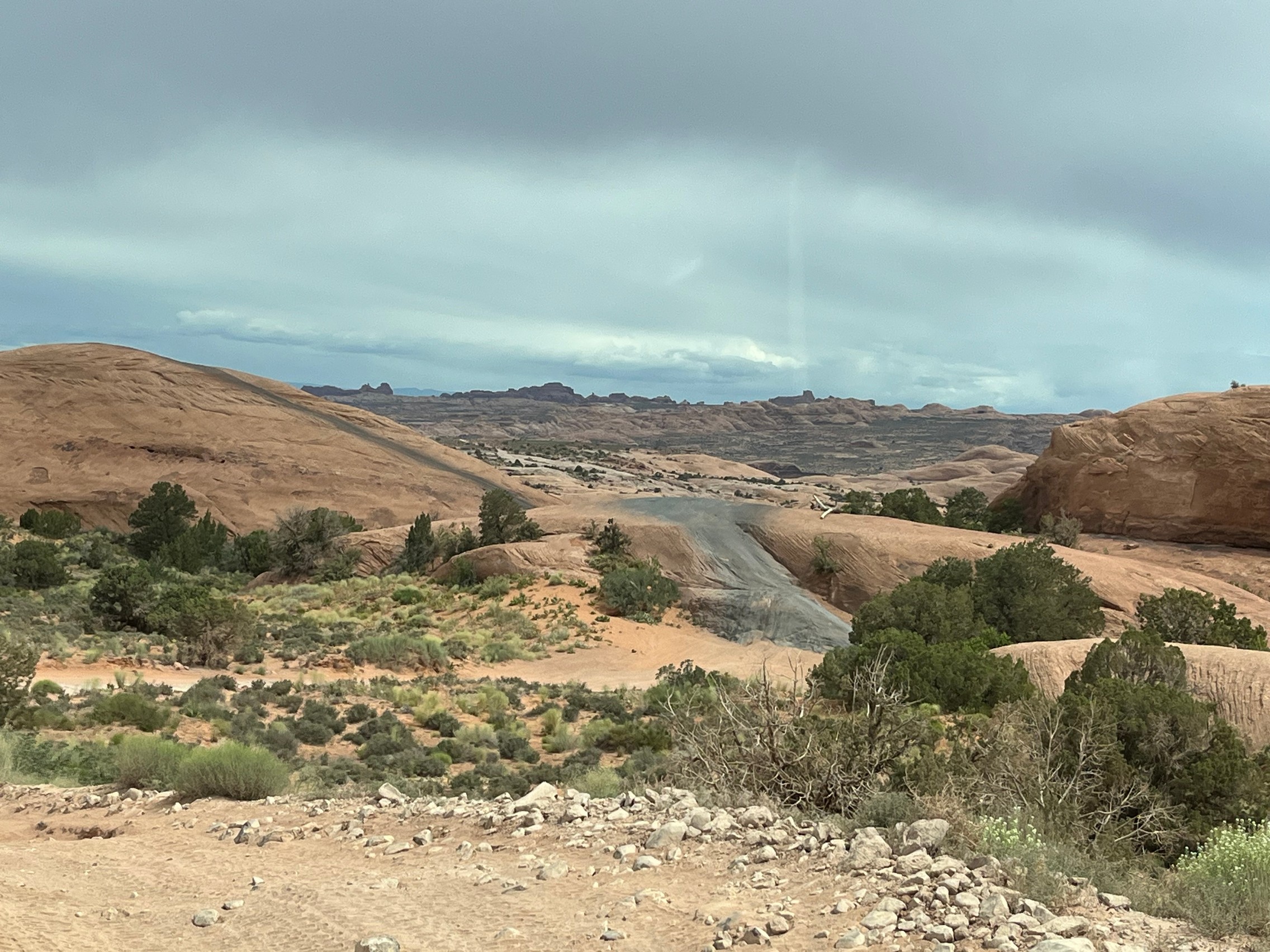 As usual, Hell's Revenge was very busy. We stopped at the dinosaur tracks and overlook for a bit before heading on. At most of the up-and-down hills, we had to wait to go up or down because of all the traffic. It was mostly side-by-sides with just a few Jeeps.