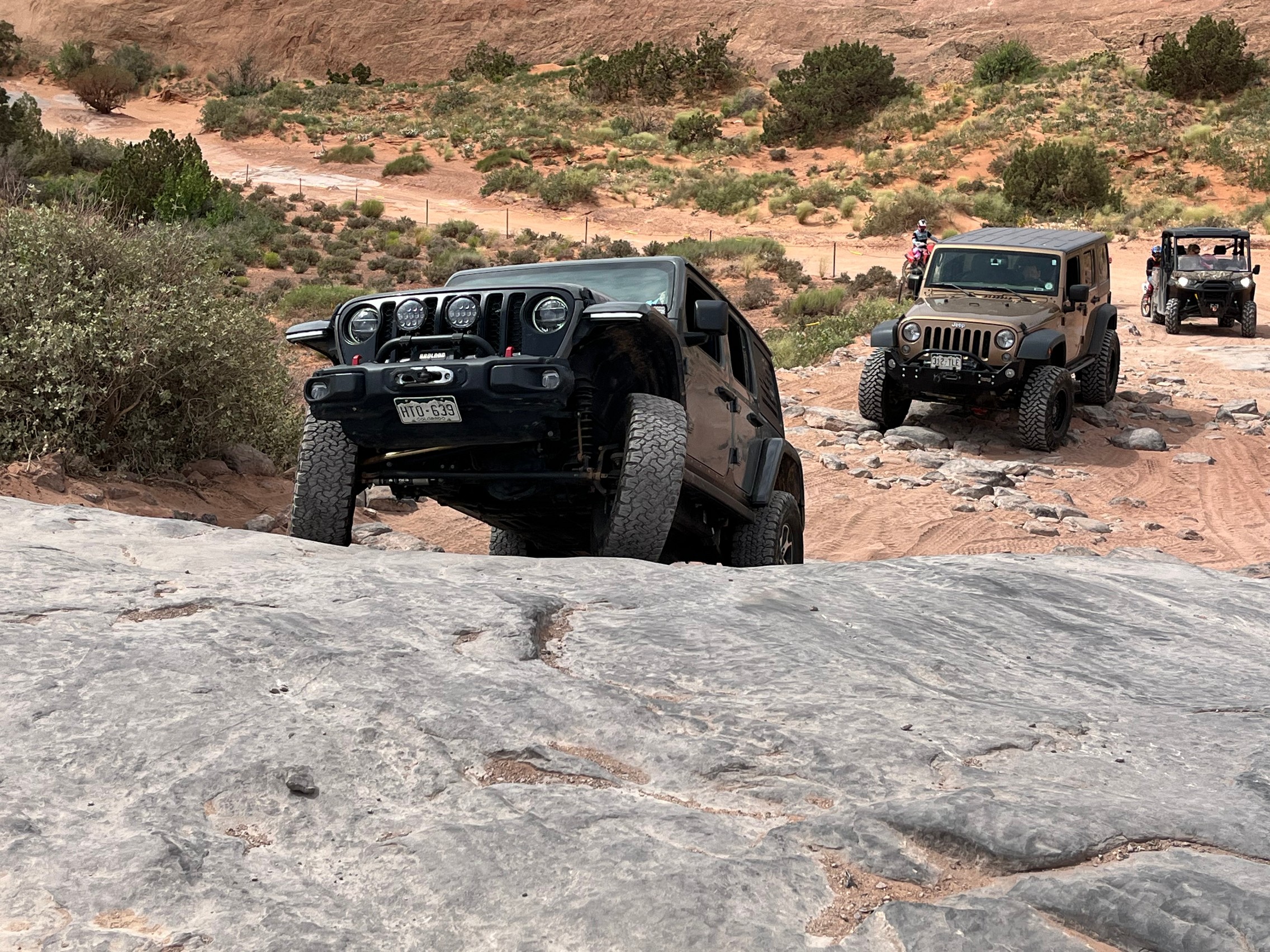 Most of Hell's Revenge did not give us any issues. At the overlook at the end of Hell's Revenge, we stopped for a few minutes and got to see our first Bronco on a trail. We were all happy to see the Bronco enjoying going off road.