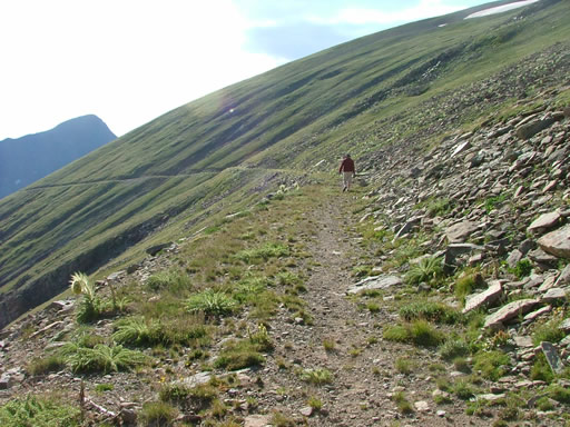 We popped out of the trees and were surprised to find a big, open area with our trail stretching into the distance. The views of the mountains were amazing and we took lots of pictures. It would continue getting better and better.