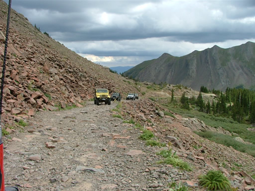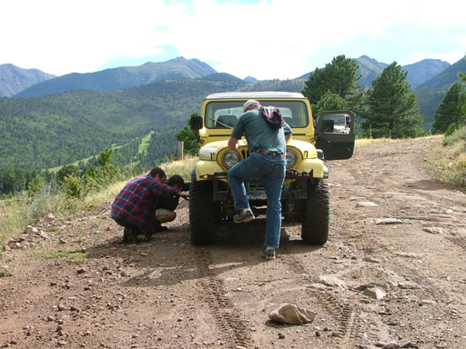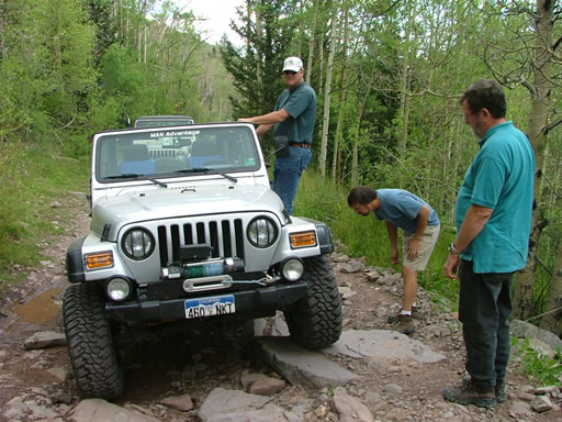 There weren't too many people on the trail as we worked our way up. Don heard a noise coming from his Jeep and couldn't figure out what it was, but eventually he found his trackbar bolt was really loose. He tightened it up and he was good to go.