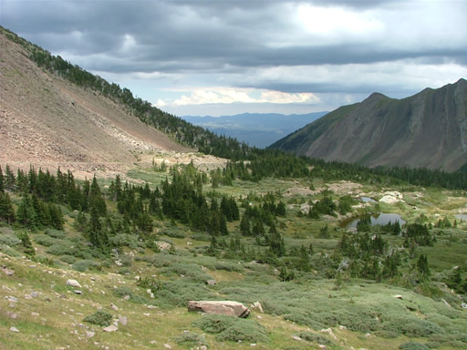 We worked our way up to timberline, then passed the trees and up to the lakes. It was beautiful. We looked back and it was pouring rain on Westcliffe and our trailhead, but we were still in perfect weather.
