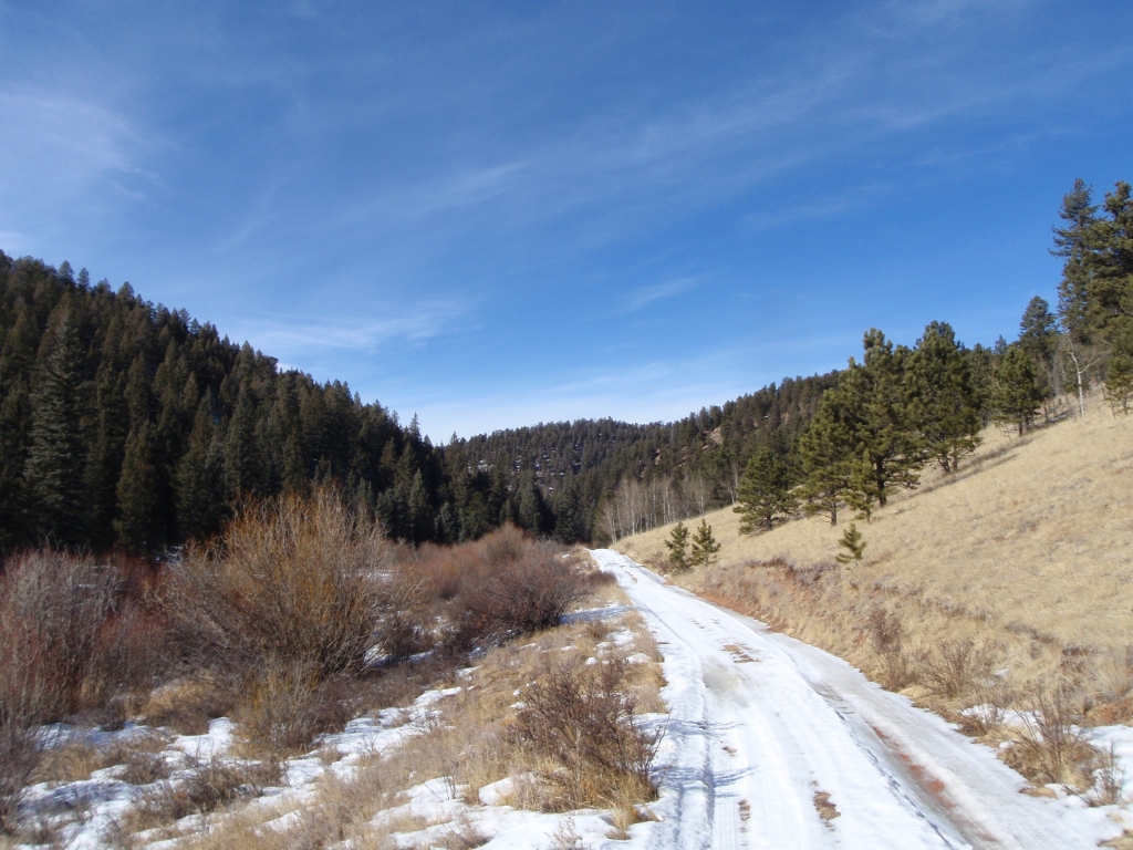 The first part of the trail had a good amount of snow to drove on. The snow started to fade away halfway down Hotel Gulch and soon we found ourselves mostly on dirt with rare patches of snow.