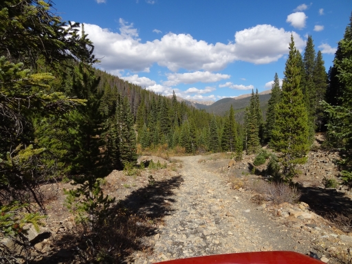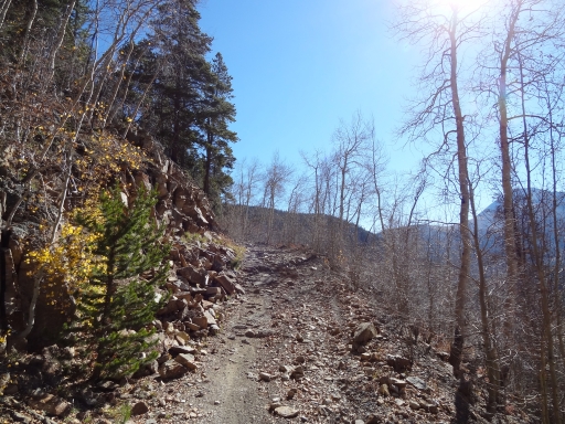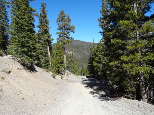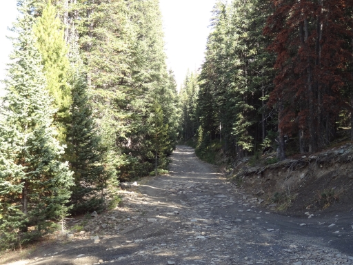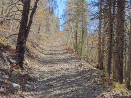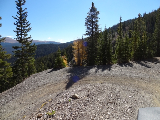 We wanted to see both sections of the eastern side of the trail. Earlier, we had come up the southern connection to French Gulch Road after stopping at the gravesite. That was a fun hill climb. When we got to four points the first time we made a wrong turn and started heading up Farncomb Hill by mistake, so we were figuring it all out by now. Earlier in the day we had done the southern option along the easy trail. It was a nice drive, especially through the exposed area of mine tailings.