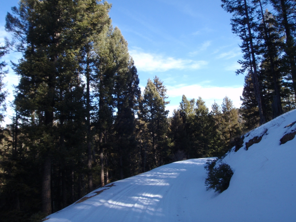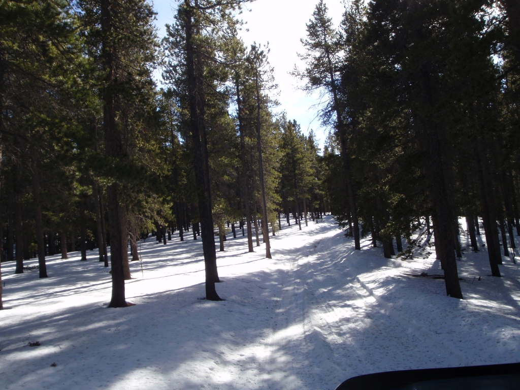 We headed down the trail, and we were about halfway into the trail when the truck tracks disappeared and the snow was getting deeper. The rest of Ice Cave Creek Road was slow going in the deep snow and making it through the big snow drifts.