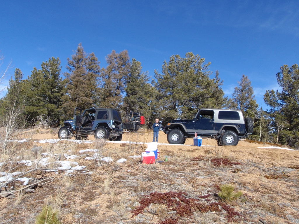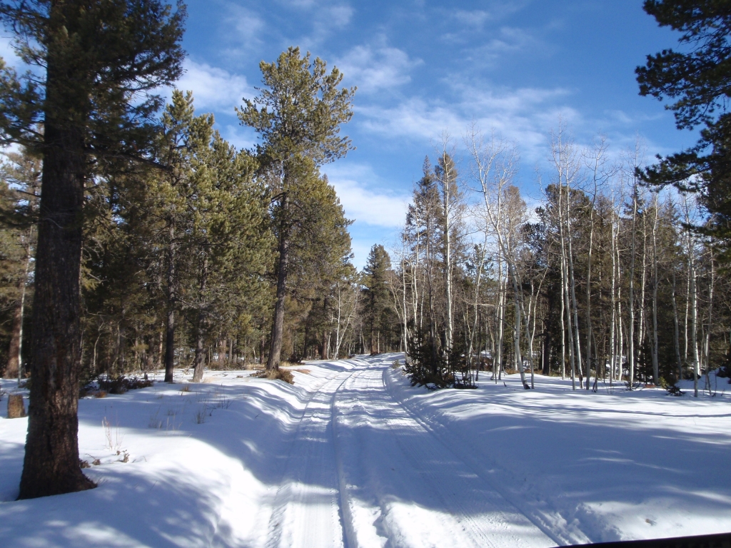 We did find a good spot to stop for lunch without a lot of snow, and it had a great view. After lunch, we finished Ice Cave Creek Road and thought that it would be good idea to go down Hotel Gulch and not to run Balanced Rock Road this time. Three trails down and it was still early in the afternoon. There still wasn't much snow on the trails.