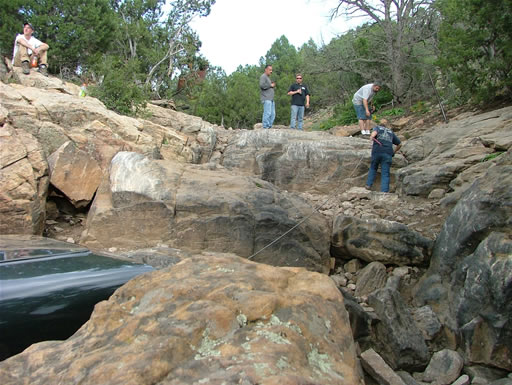 While the others used Mark's winch, the rest of us walked up to the exit to decide which way we were going. Monica was going to go out Freedom Trail with her broken front end, but Mark wasn't sure which way he was going to go. In the end, he decided to go out Freedom this time, too. We'll save the exit on Indy for next time.