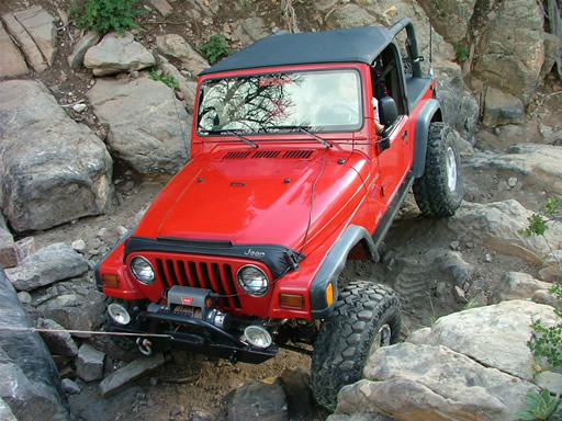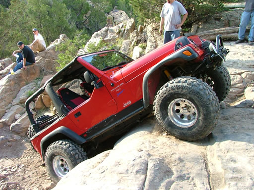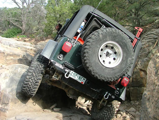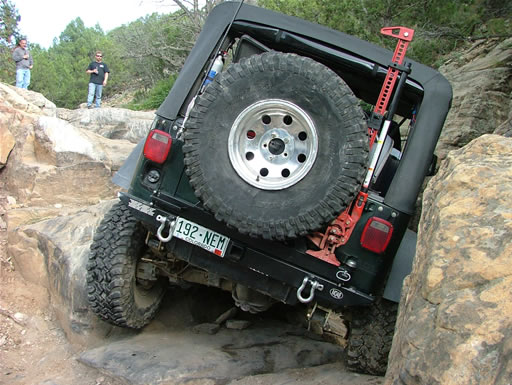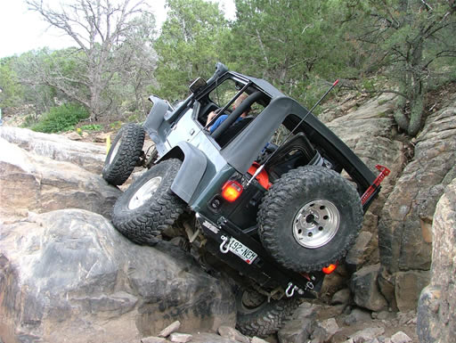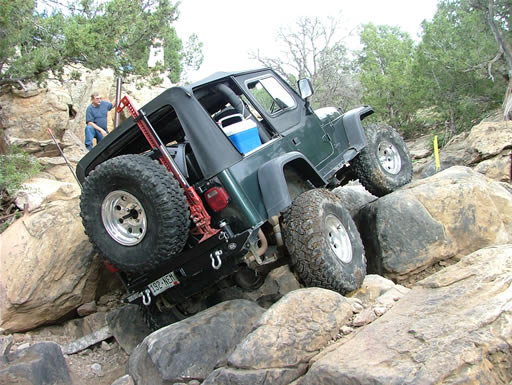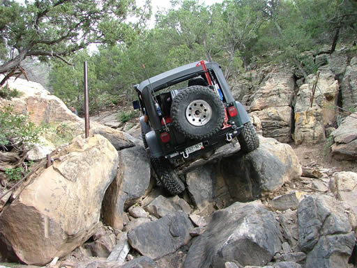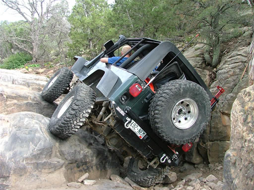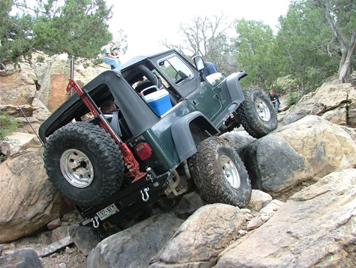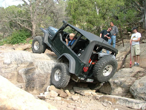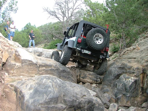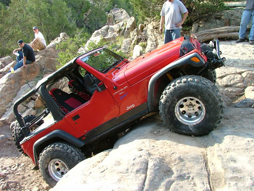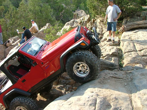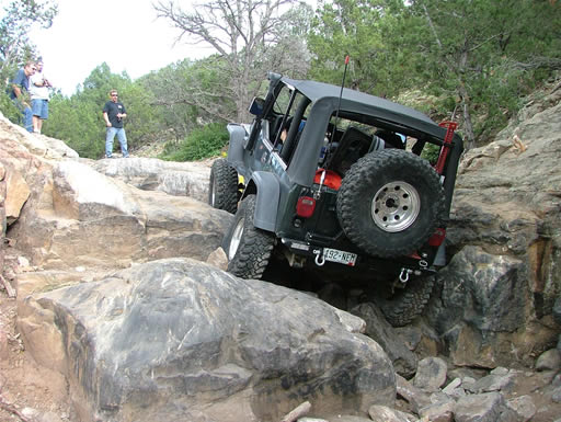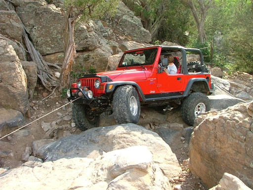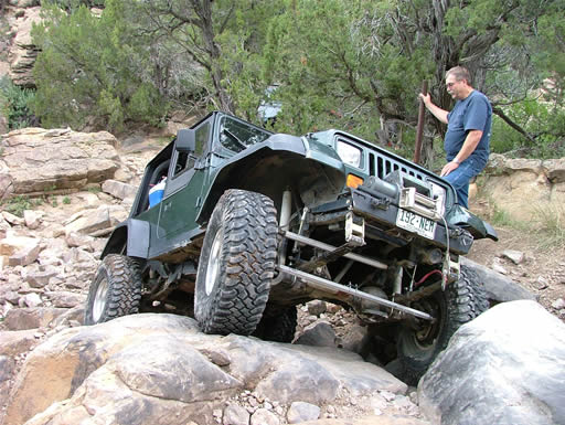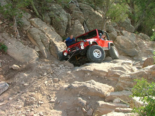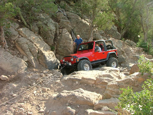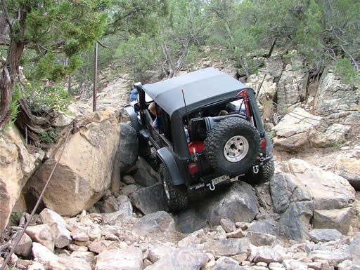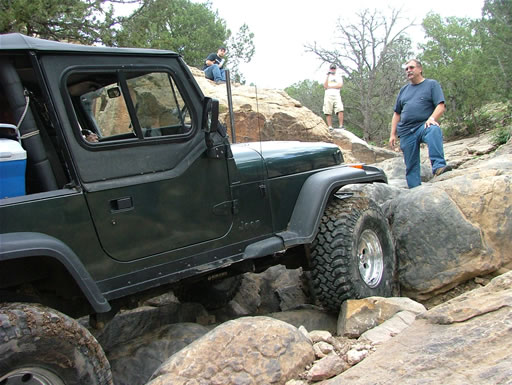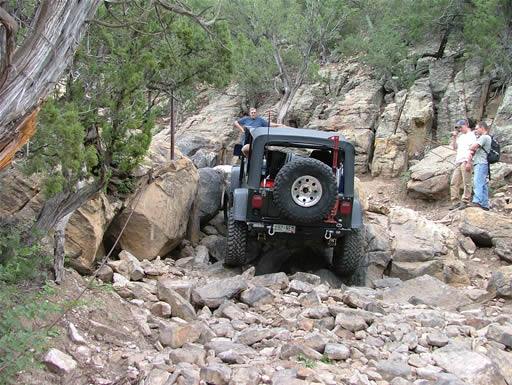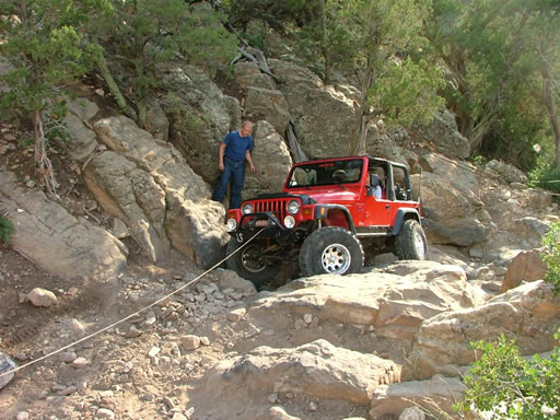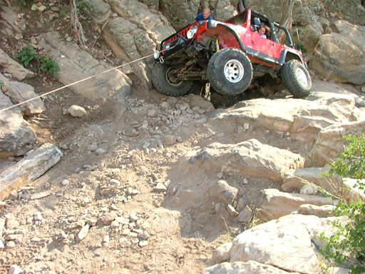 The middle part of it was also quite a challenge, with another rock on the right side that also came within an inch or two of scraping paint off of Mark's Jeep. Winching helped keep him further to the left while he leaned his way around it, and he missed out on body damage.