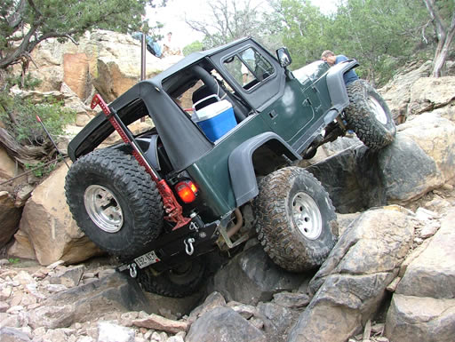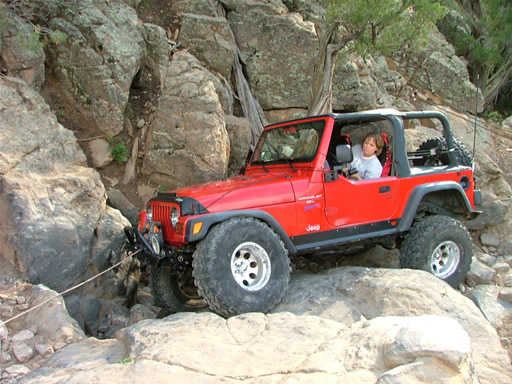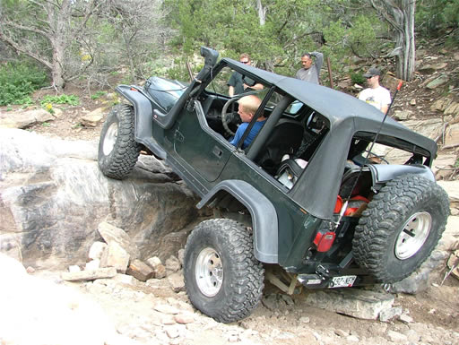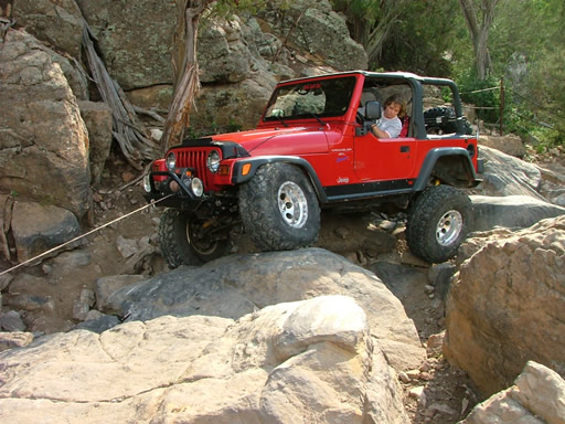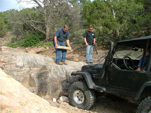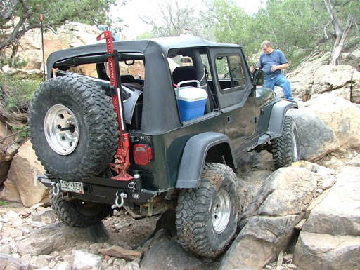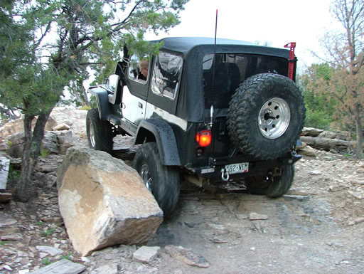 Mark decided he'd see if he could get up the bottom part without hitting his body or door on the big rock to the left. He worked on it, but soon realized he'd have to winch. He winched himself up it and managed to miss hitting the rock by an inch or two. It was really close.