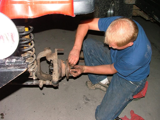 The guys came up with a great plan for Monica's situation. They took the stub shaft off of her spare axle shaft and switched that out with the short side in the front axle. They stuffed a rag in the axle tube to stop the grease from coming out, and basically she was no longer attached on that side -- and no longer locked. That was the trick, and it worked great!