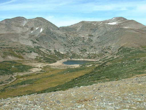 There was a dusting of snow on all of the peaks around the trail and we saw snow in places along the trail too. Ladd's thermometer said it was 40 degrees, but that wasn't including the wind chill factor. The wind was strong enough to make you lose your balance at times. Though it was cold and windy, the sky was blue and the scenery was amazing as the Aspen trees were just changing over to yellow.