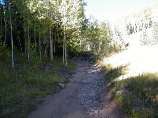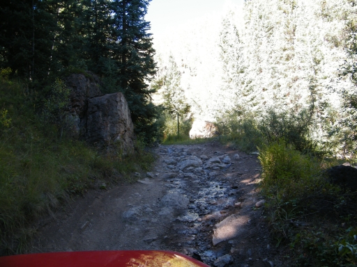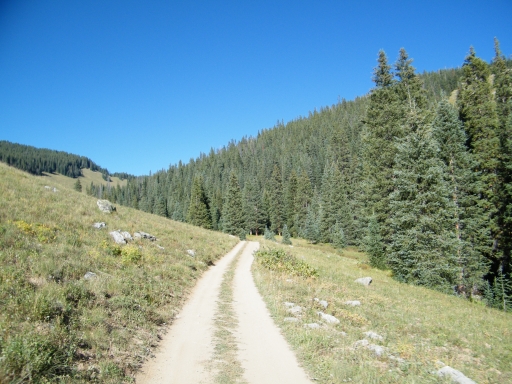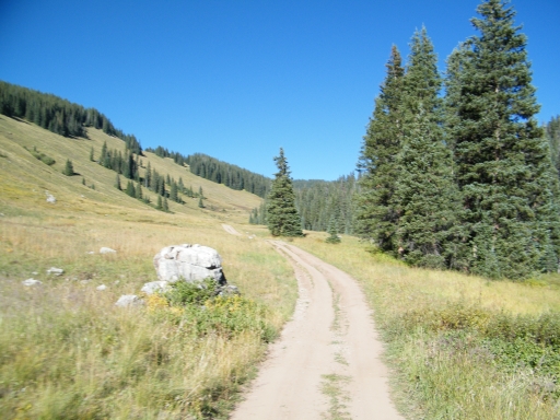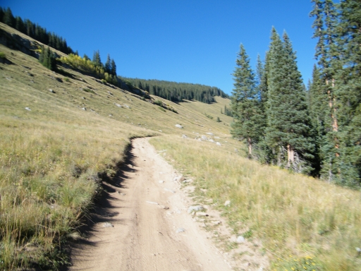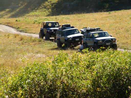 We climbed for a bit until we came to the flat section, driving through meadows and patches of trees. The trail was fairly mellow, and everyone was on the CB talking about how gorgeous everyone was. You could see the greens starting to turn to fall colors, and it was very scenic.