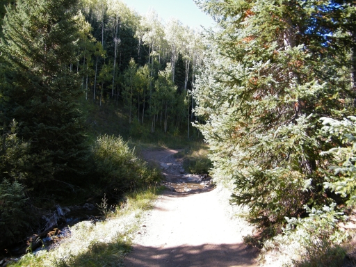 We saw a guy on a dirt bike at the trailhead, but then we didn't see anyone else until we were nearly at the end of the trail. That made for a relaxing time watching the shadows get longer as we watched the gorgeous scenery go by.