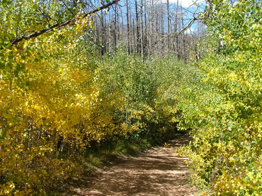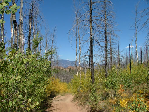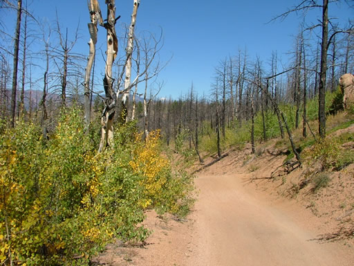 The first half of the trail was easy. It was very scenic and somehow beautiful even though it was badly burned. There were lots of yellow aspen trees claiming the space between the tall, black, burned pine trees. It was definitely a unique sight.