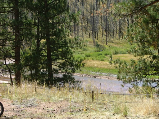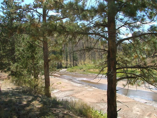 We soon got to the bottom and found another group of vehicles as well as parked ATVs and dirt bikes. The vehicle group finished their lunches and headed up while we were getting ours organized. We had a fabulous lunch under huge, unburned pine trees. The views of the South Platte River were very nice.