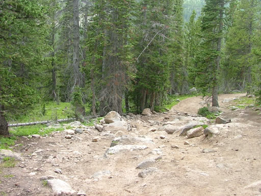 The rocks got even more fun past the cabin and we all enjoyed ourselves. There was one steep section that came down some big rocks to a clearing, where we turned left to cross Mill Creek a second time. We turned left there after the creek and continued on.