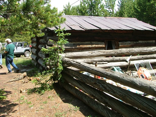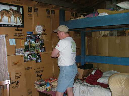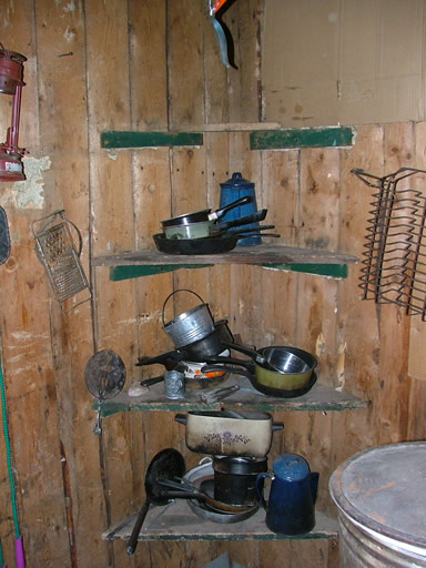 The cabin wasn't really clean but it was well-stocked. There were cardboard boxes flattened and attached to the walls, so it was probably pretty warm and comfortable in the winter. There were lots of pictures attached to the walls of people actually at the cabin, so they must be frequent guests. It was pretty cool to check out. At that point a truck went by us, just as we were leaving.