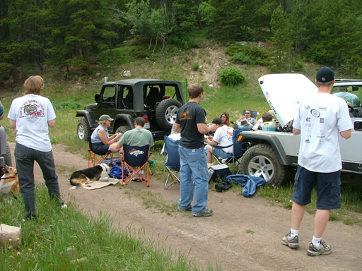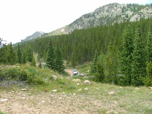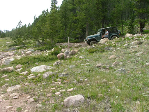 It started out rocky and fun and it wasn't long before we got to the clearing next to the creek, where we had lunch. There were quite a few mosquitoes because the season had been so wet, but a little bug spray held them off. The dogs ran around and played and we had a great lunch. We were passed by one SUV there.