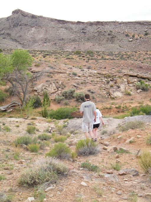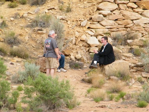 We headed off to check out the dinosaur viewing area, which is still accessible in a vehicle. You can't drive any further than the parking area, though. We enjoyed the little hike, and then we had a discussion. Bill was back at the condo in town, waiting on parts, and he needed help from the group to get his Jeep put back together again. We gave him a call and he was still waiting, so we all decided to continue on with the Wipe-Out Hill trail and meet him for dinner later on instead.
