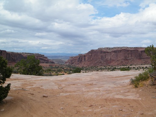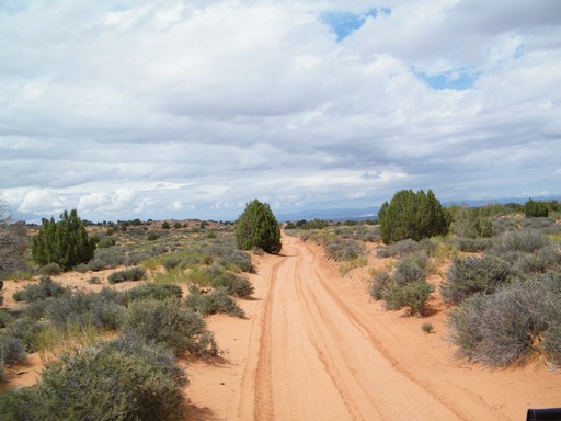 The last time we had tried to go around the butte the other way, the road was washed out and we couldn't continue. We turned, though, hoping that they had fixed the road. This time there were painted lines on the slickrock to follow, and we knew we were on the right track.