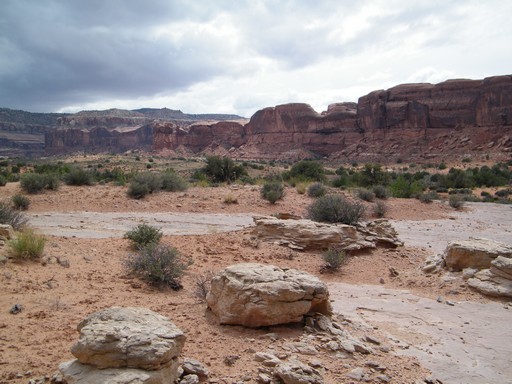 We were almost to the washed out area when we found that they had blocked that area off, too. Vehicles could no longer drive over there, which was fine with us. Instead, they continued the trail further out and around Courthouse Rock.