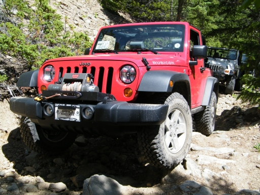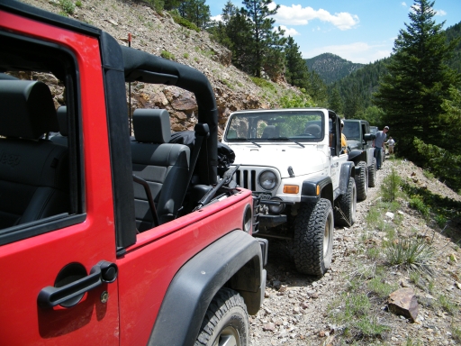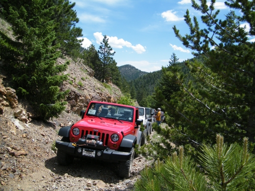 There are some rocky sections on the way up, and everyone enjoyed it. Monica probably enjoyed it the most, figuring out how to wheel an automatic transmission for a change. We all took lots of pictures but it was impossible to get a picture showing all of the vehicles in a line. It seemed to stretch on forever.