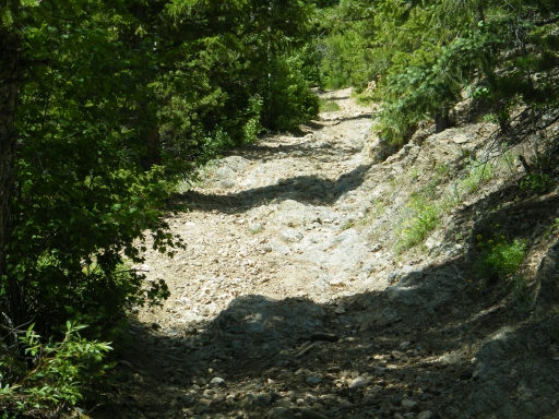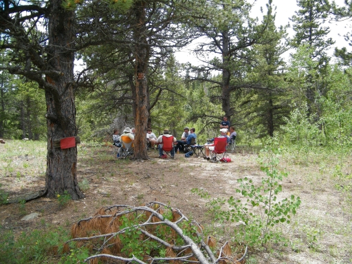 When we got near the end at the top of the hill we spotted a wide area with some shade that would be perfect for lunch. It was noon, so we stopped there. We all spread out in the shade and chatted and laughed for awhile. It seemed like no one wanted lunch to end, but we packed up eventually. Sometimes it seems like our wheeling trips are just an excuse to find a nice place for lunch.
