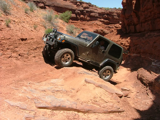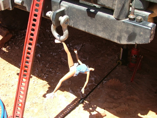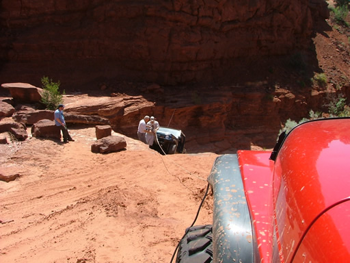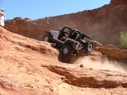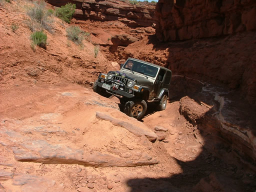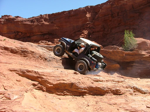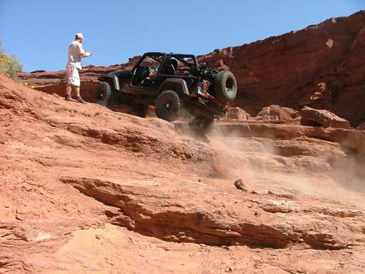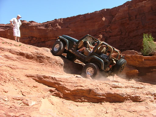 Bob was next, and he was sure he had the perfect plan. He found a great line and gave it a big bounce. He also heard a huge snapping sound when he came down, and he soon found out that he had broken his rear Dana 44 axle shaft very near his differential. He backed down, hoping everything else was okay.