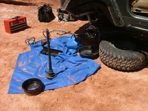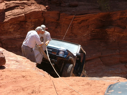 Monica, Michael and Walt went to finish the rest of the day's trails while Don, Bob and Kendall went to find repairs. Don found the last drive shaft in town that would fit his Jeep and he was good to go. Bob had to leave his Jeep at the shop so they could get the remaining pieces out and put in chromoly shafts. Kendall couldn't find Samurai springs so he was done for the week. He ended up going home the next morning, and Bob missed most of the next day's trails.